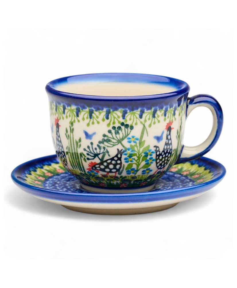 0252 Vika cup with plate, in unique "guinea hen" pattern no. 950
