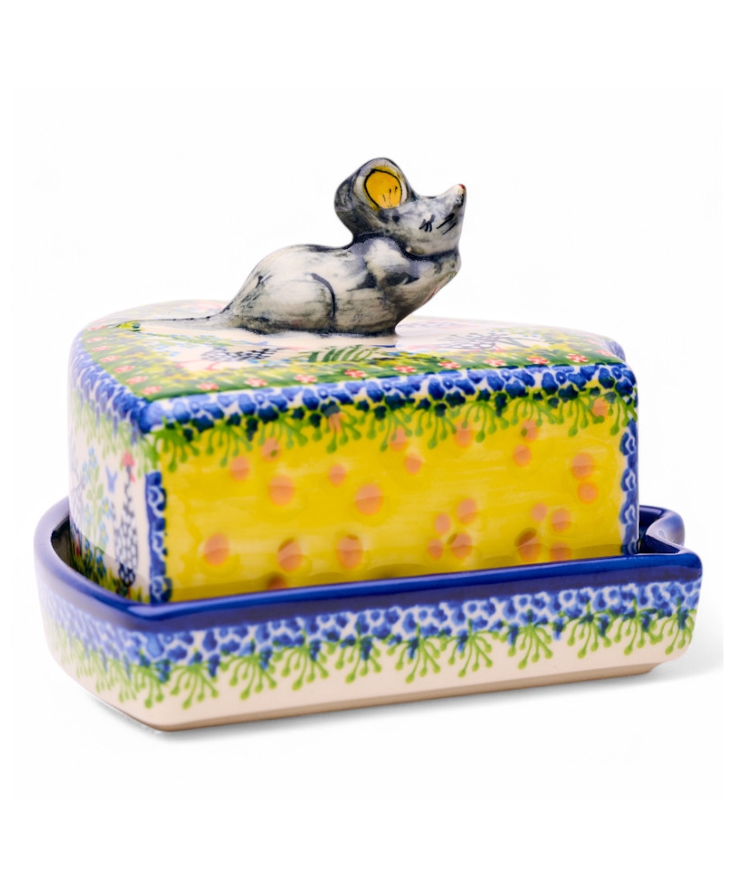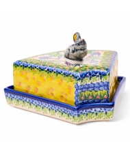 0627 Cheese container with mouse, in unique "guinea hen" pattern no. 950