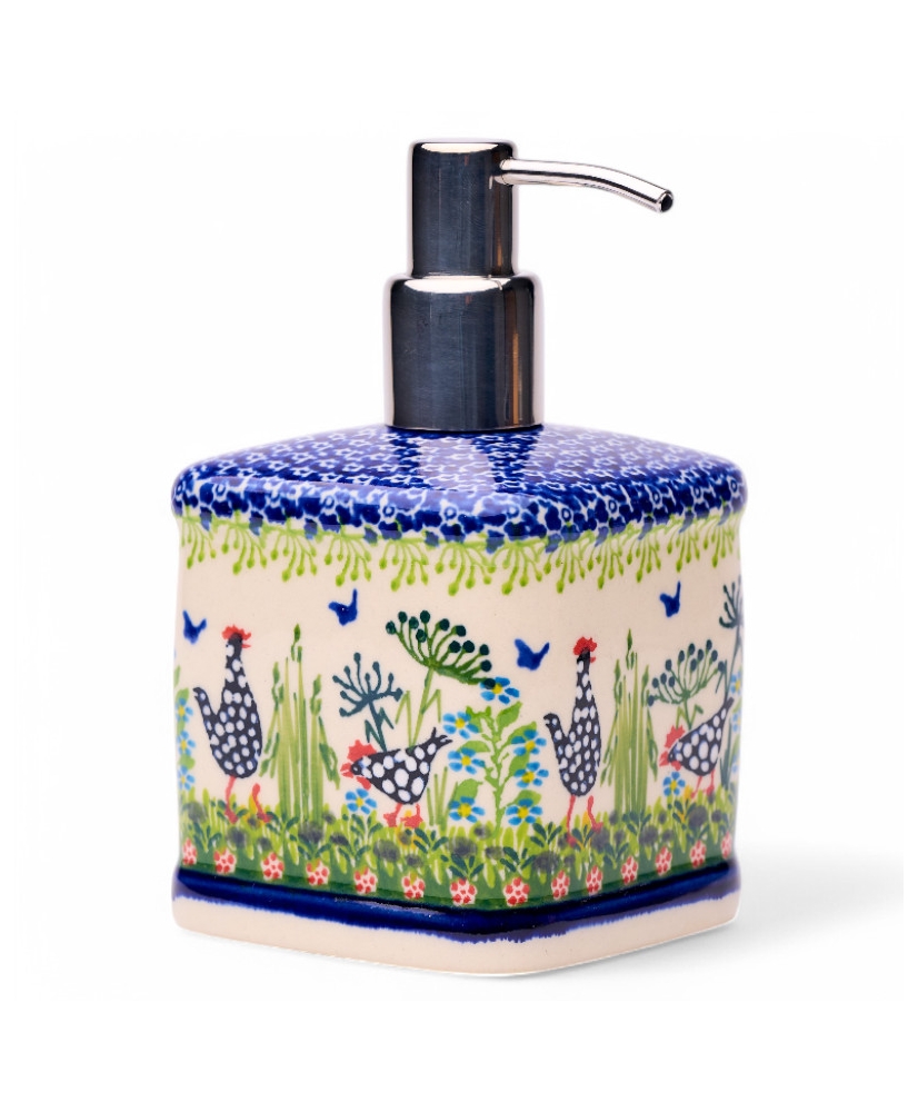 0644 Soap container with pump, in unique "guinea hen" pattern no. 950