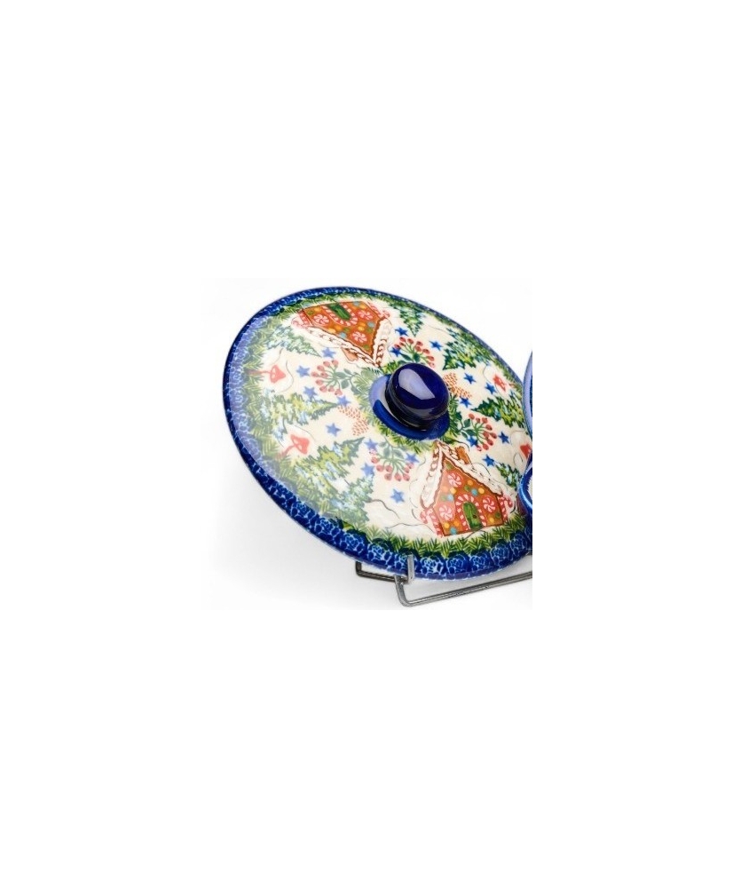 1238 Lid for casseroles 1234 - 1236, in a Christmas "gingerbread house" pattern - artistic patter no. 1121