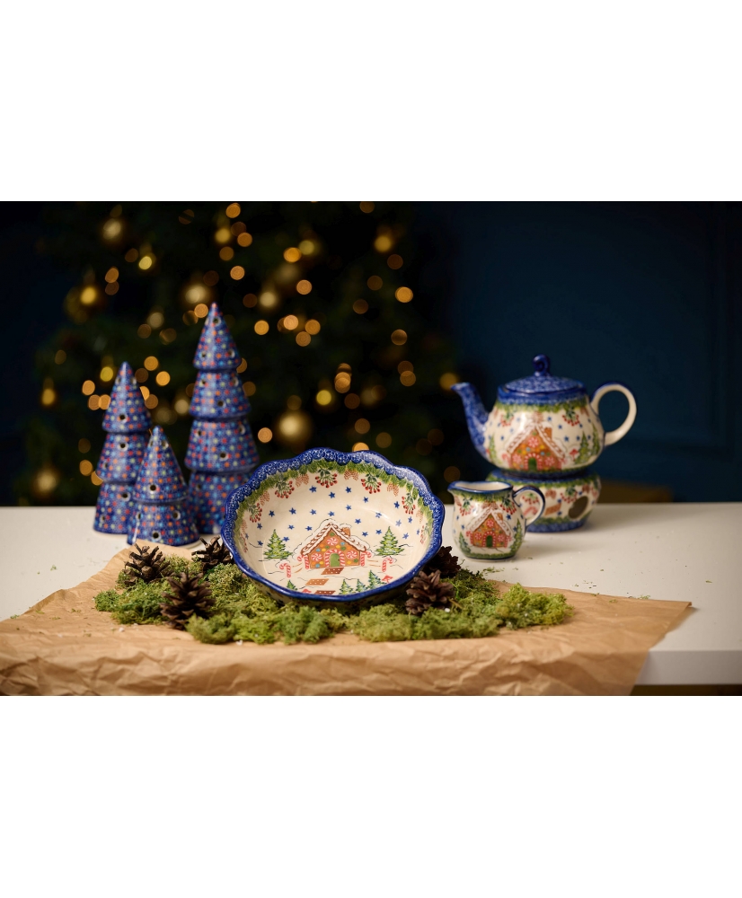 0448 Kora bowl, in a Christmas "gingerbread house" pattern - artistic patter no. 1121