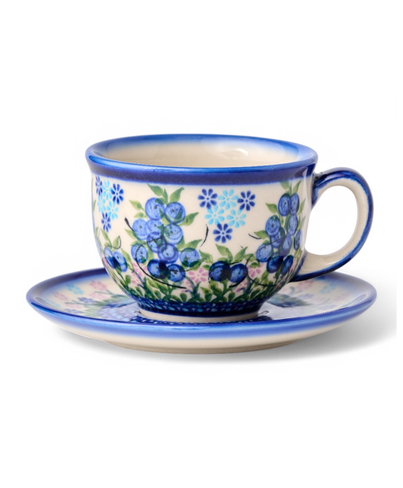 0252 Filiżanka Viki + spodek , w unikatowej dekoracji "niebieska jagoda" nr. 288
