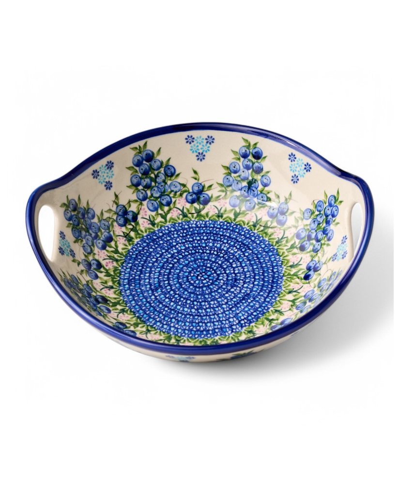 0416 Miska z uszami - średnia, w unikatowej dekoracji "niebieska jagoda" nr. 288